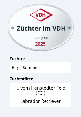 Seit 2006 züchte ich unter dem von der FCI geschützten Kennelnamen "vom Henstedter Feld" Labrador Retriever im Deutschen Retriever Club e.V.
